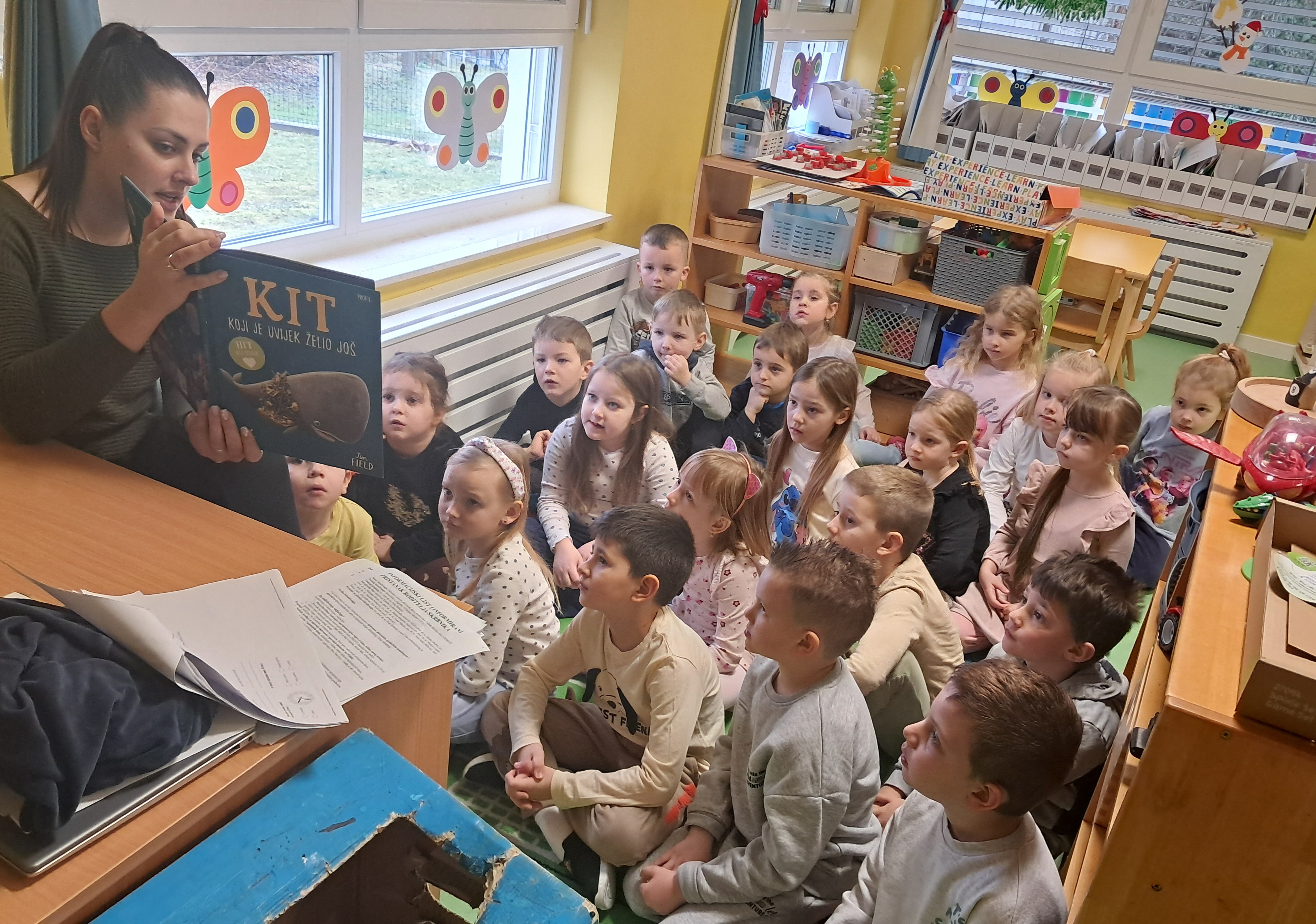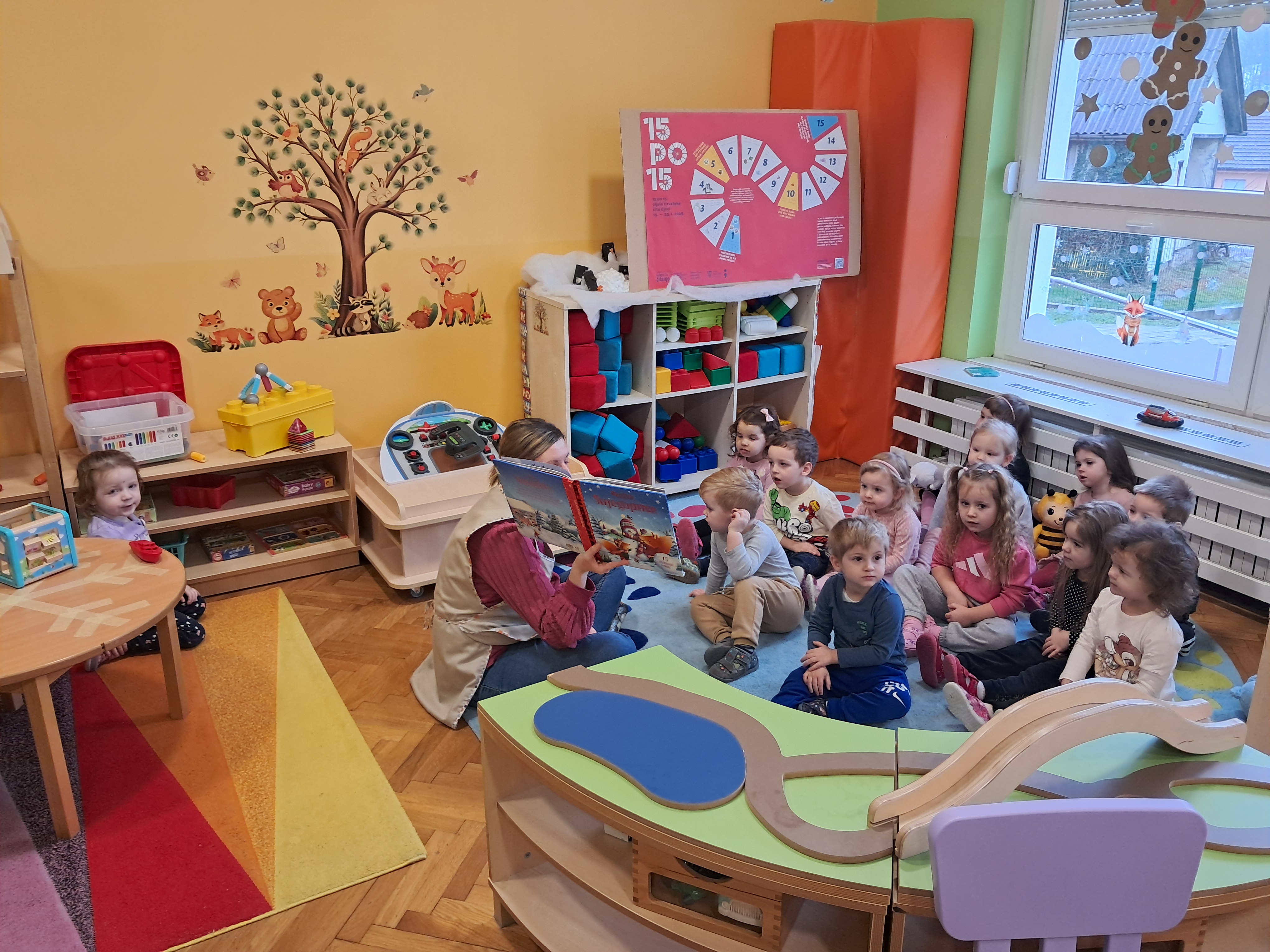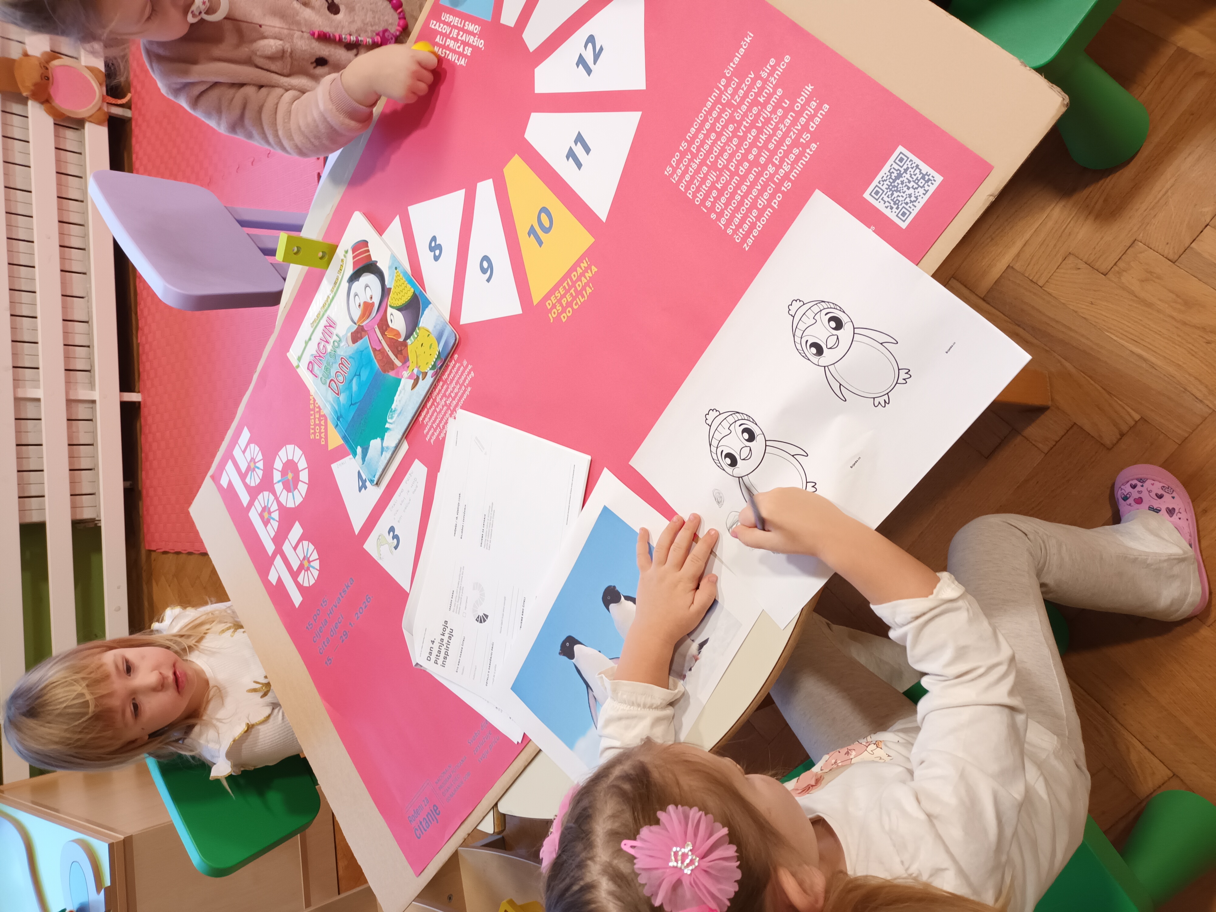 Pozivamo Vas da se i Vi pridružite 15-dnevnom čitalačkom izazovu posvećenom djeci predškolskog uzrasta. Čitajte djeci svakog dana 15 minuta i pretvorite te trenutke u vrijeme koje vrijedi najviše na svijetu. Lijepa iskustva s knjigama u djetinjstvu grade trajnu ljubav prema čitanju. U vrtiću čitamo priče i slikovnice te svakodnevno uživamo u tome. Čitajući djeci ,ona uče vještinu slušanja i pamćenja, prepoznaju osjećaje i razvijaju empatiju, usvajaju nove riječi, zamišljaju nove svijetove, razvijaju logičko razmišljanje, povezuju uzrok i posljedicu..